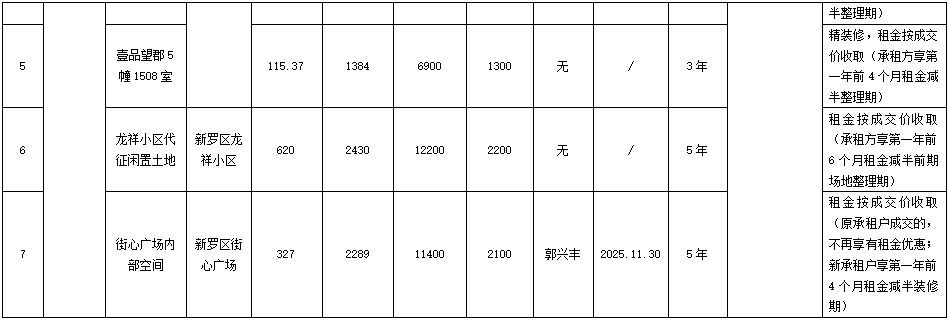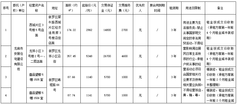 2026年1月16日(第一次)网络竞租龙岩市新罗区西城片区、龙祥小区、壹品望郡等7处资产