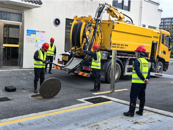 本次演练坚持“紧贴实战、突出重点、注重实效”原则,精准模拟汛期可能发生的两类典型紧急险情,全面锤炼应急队伍处置硬功。第一个模拟场景中,巡查人员发现雨水管道排水异常缓慢,疑似存在内部淤积堵塞问题,将严重影响汛期排水畅通。接到险情报告后,维护班组迅速集结、快速响应,第一时间抵达现场,完成安全布控,设置警示标识,随后出动管道疏通车等专业设备,对堵塞管道开展高压冲洗、清淤作业,高效完成排险任务,确保管道排水通畅。
